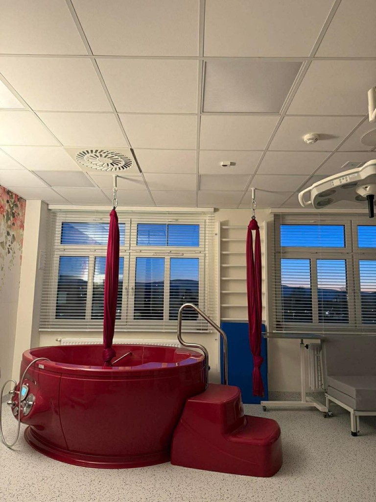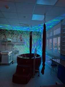 - przyjmowanie pozycji wertykalnych z wykorzystaniem sprzętu pomocniczego dostępnego na Sali Porodowej tj. piłka, materac, drabinki, krzesełka, łóżko porodowe