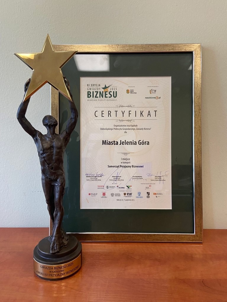 Miasto Jelenia Góra zdobyło  1. miejsce w kategorii „Samorząd Przyjazny Biznesowi” w XI edycji plebiscytu Gwiazdy Biznesu 2025, organizowanego przez Fundusz Regionu Wałbrzyskiego.
