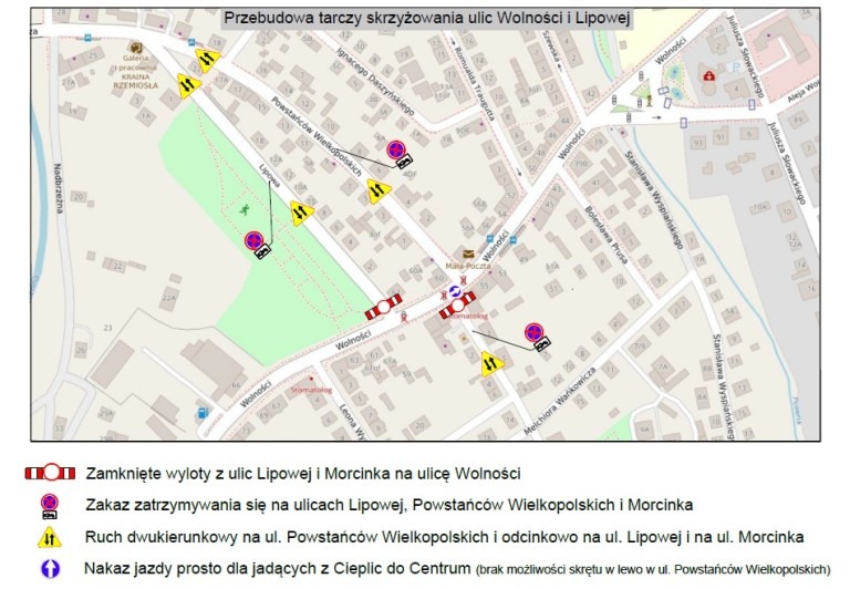 Przebudowa nawierzchni ulicy Wolności w Jeleniej Górze – Etap II. Zgodnie z przekazanymi informacjami od Wykonawcy, czasowa organizacja ruchu w obrębie